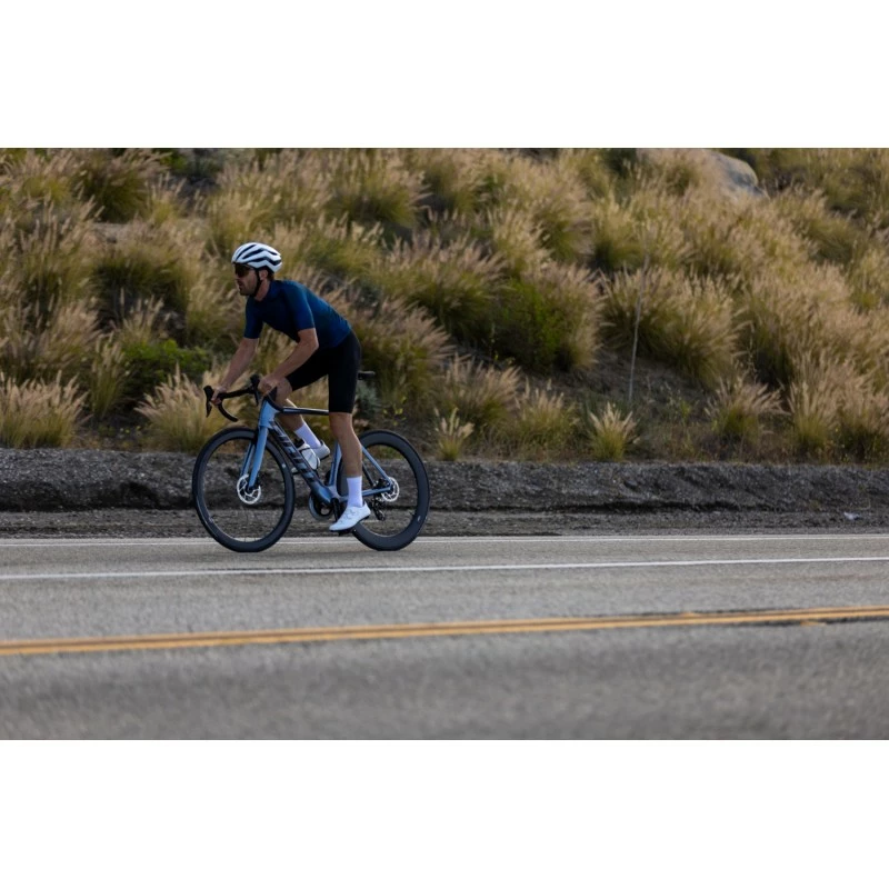 In discesa, in volata o in curva a tutta velocità. L’ efficienza incontra il controllo totale in questa bici da strada super aerodinamica in carbonio.