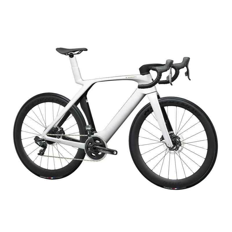 Madone SLR 7 è il bolide da corsa per eccellenza. Un telaio in carbonio OCLV 800 Series con esclusiva tecnologia IsoFlow migliora l’aerodinamica, riduce il peso e spiana le asperità della strada. Realizzata da zero con componenti selezionati con cura per essere rapida e scorrevole, come la trasmissione elettronica wireless a 12 velocità Force eTap AXS e le ruote in carbonio con un profilo del cerchio alto che migliora l’aerodinamica.