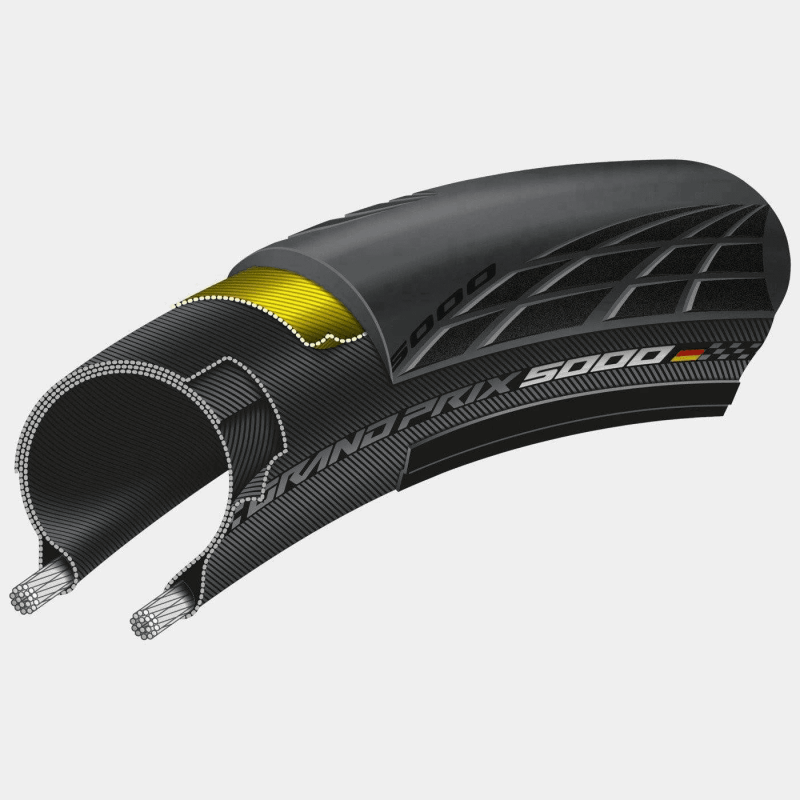 Il Grand Prix 5000 offre il 12% in più di resistenza di rotolamento ed il 20% in più di protezione antiforature.