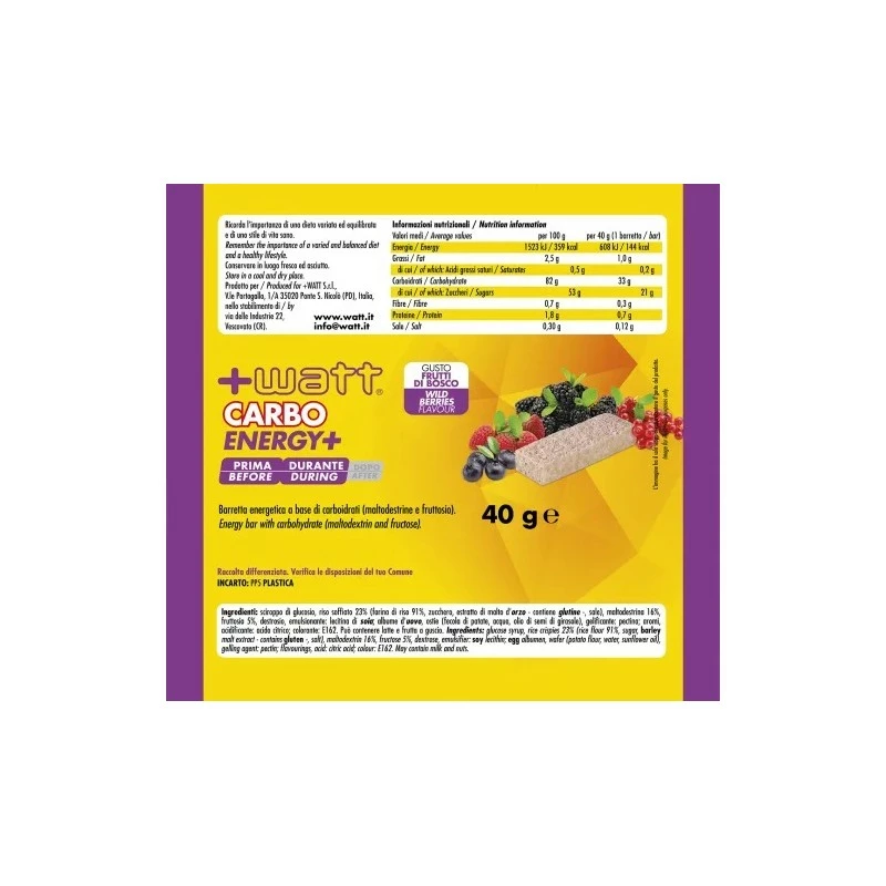 CARBO ENERGY+ è una barretta energetica al gusto di frutta.